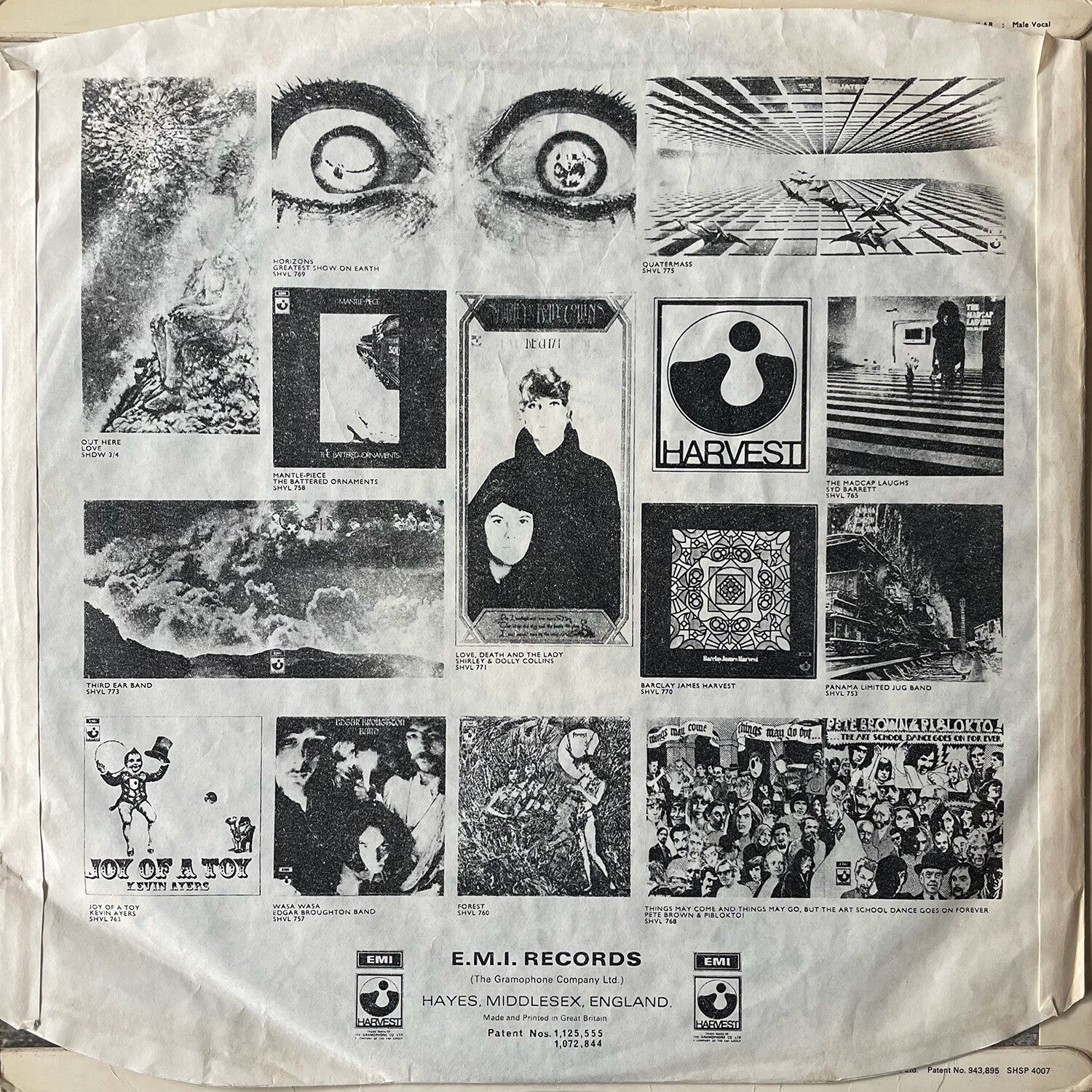 [7036] UK Harvest 1970 SHSP 4007 A-1G M 1 / SHSP 4007 B-1G M 1 matrix imprint 11-track LP in laminated flipback picture sleeve. Labels with no EMI logo. With original inner. SHSP 4007. VG+/VG+.