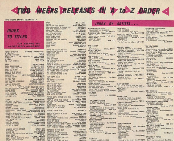 [9056] UK 11.7x24.7cm music industry magazine detailing recent releases. Includes: Point Me At The Sky. Condition: VG.