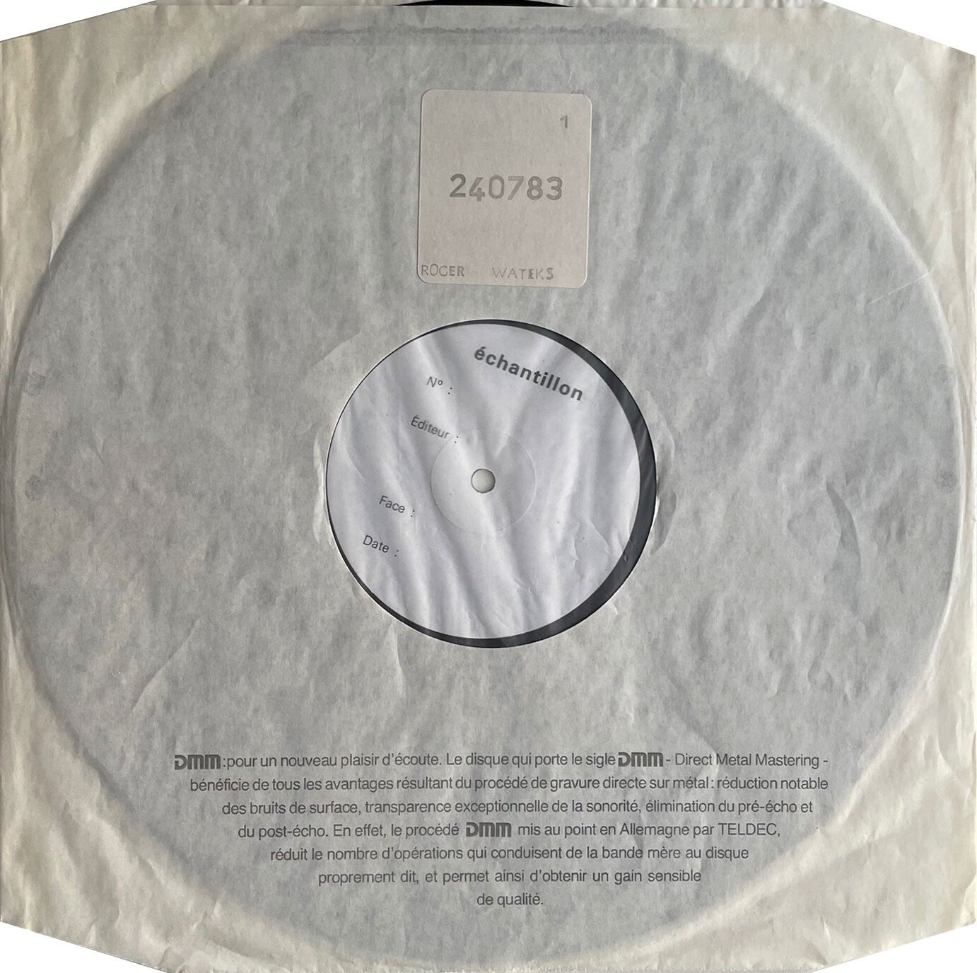 [9335] France EMI 1987 8-track test pressing LP in custom stickered inner and hype stickered picture sleeve with DISQUE GRATUIT - INTERDIT A LA VENTE imprint. There is a light scratch on side two. 2407381. 240783. VG+/VG++