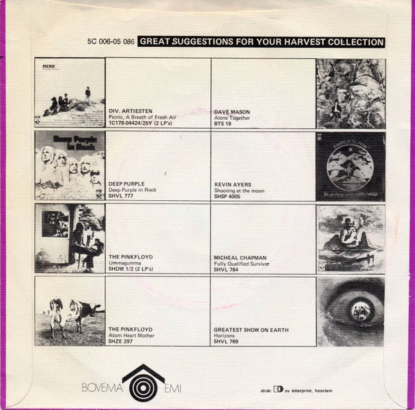 [9218] Holland Harvest 1972 2-track 7inch in picture sleeve. Includes: Free Four / Wot's … Uh The Deal. Not the rarest single (at least in Holland) but I've never seen such a stunning copy. Single is near mint and sleeve is in a mindblowing condition with very faint trace of ringwear and supadupa clean sides. 5C 006-05086. NM/EX.