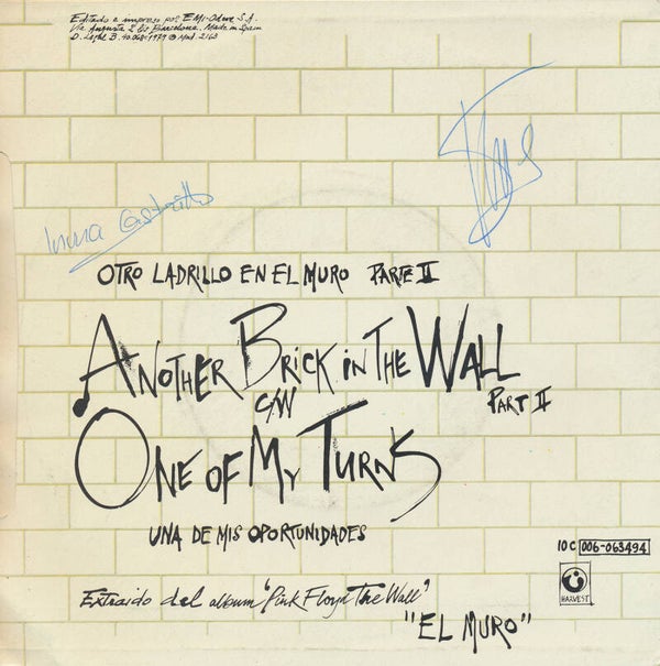 [6658] Spain Harvest 1979 2-track 7inch in picture sleeve. Some writing on the back but a pretty decent copy. Includes: Another Brick In The Wall Part 2 / One Of My Turns. 10C 006-063494. VG+/VG+.