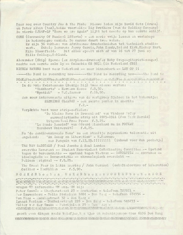 [6774] Holland 1969 21.5 x 27.5 cm original two-sided newsletter issued by the Provadya? Movement, with a mention of More. VG+.
