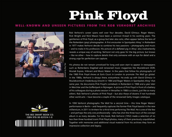 Ruim vier decennia omspant de carrière van Rob Verhorst inmiddels. Al die jaren lopen David Gilmour, Roger Waters, Rick Wright en Nick Mason als een rode draad door zijn indrukwekkende loopbaan. In groepsverband maar later ook solo krijgt de Rotterdamse (pop)fotograaf de heren van Pink Floyd vaak en veelvuldig voor de lens. Een eerste kennismaking in Sportpaleis Ahoy’ in Rotterdam in 1977 doet Verhorst ertoe besluiten zijn beide passies – fotograferen en muziek – te combineren en daar zijn beroep van te maken. De foto van een nog niet opgeblazen varken in Ahoy’ legt ook ongewild zijn unieke werkwijze bloot. Verhorst gaat niet alleen voor het grote plaatje maar weet als geen ander bijzonderheden vast te leggen die alleen iemand met een oog voor detail en een sterke drang naar perfectie weet te vangen. Zijn foto’s blijven niet lang onopgemerkt en verschijnen spoedig in kranten als het Rotterdams Dagblad en gerenommeerde muziekbladen als Muziekkrant OOR, Muziek Expres, Hitkrant en Music Maker.