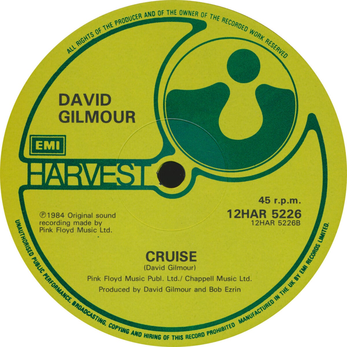 [7041] UK Harvest 1984 2-track 12inch in picture sleeve. Includes: Blue Light (Album Version) / Cruise. 12 HAR 5226. EX/EX.