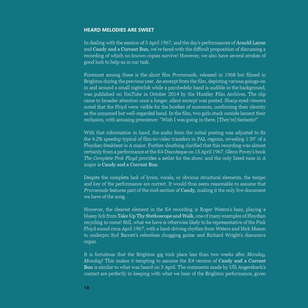 Inside are firsthand recollections from audience members and BBC engineers, and coverage of unpublished recordings, including one session that only survives in a private collection and is here described in detail for the first time. The authors delineate the best sources for all the recordings discussed, and provide up-to-date information on Pink Floyd’s other radio broadcasts.